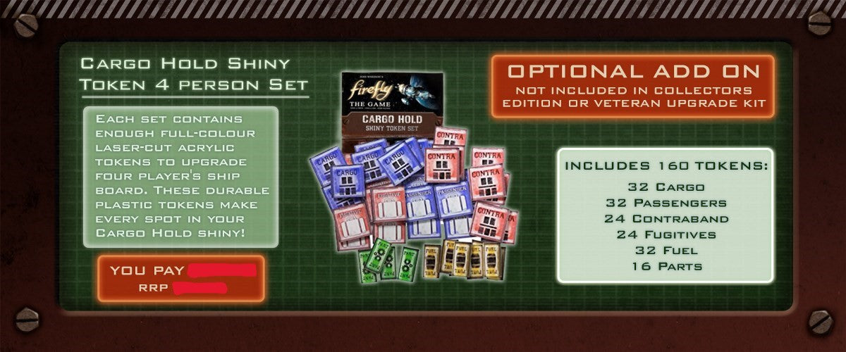 👉 Please note that Firefly: The Game Cargo Hold Shiny Token 4 Person Set is INCLUDED in the Firefly: The Game 10th Anniversary Collector's Edition Verified All-In! You'll need Firefly: The Game 10th Anniversary Collector's Edition to be able to use this set.