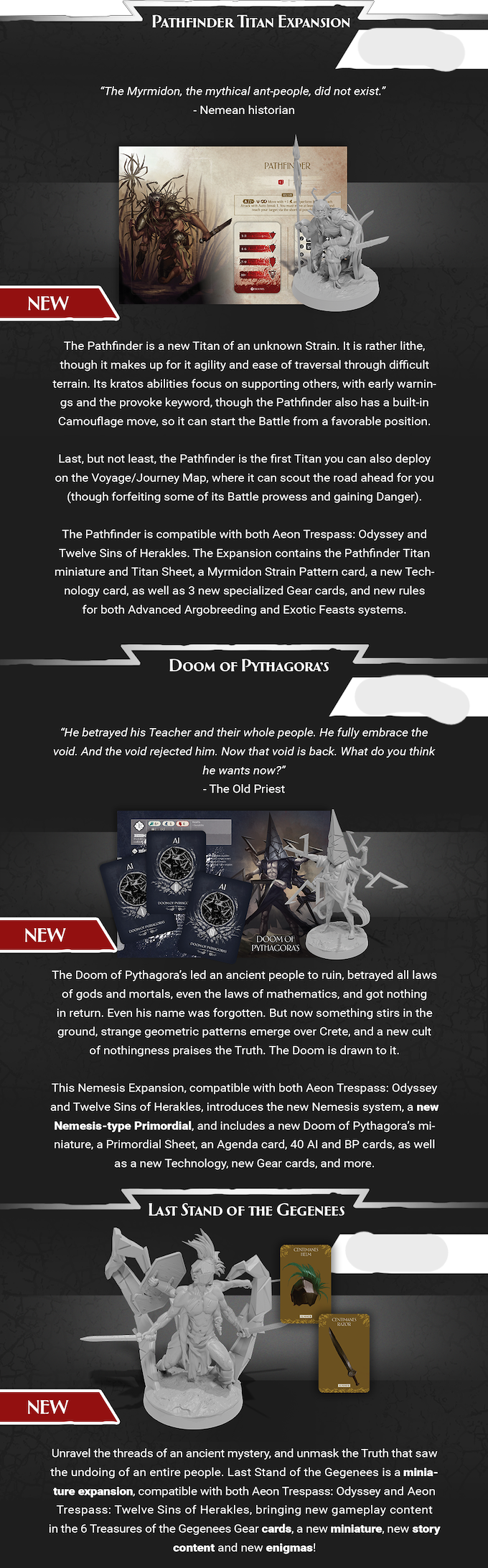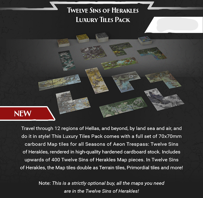 We verified that the 💀 Talespinner Titan Expansion, 💎 Eidolon Miniature Box Set, 💠 Luxury Tiles Pack for Twelve Sins of Herakles (All Seasons) and the 🗺️ Battle Mat - Twelve Sins of Herakles were not included in the Herakleides all-in during crowdfunding. Since we don't like to use the term 'All-In' lightly around here, we make sure to verify these pledges before offering them to you. No reason to worry though, since we already added these expansions in here for you! Now we verified that you are truly getting ALL-IN!