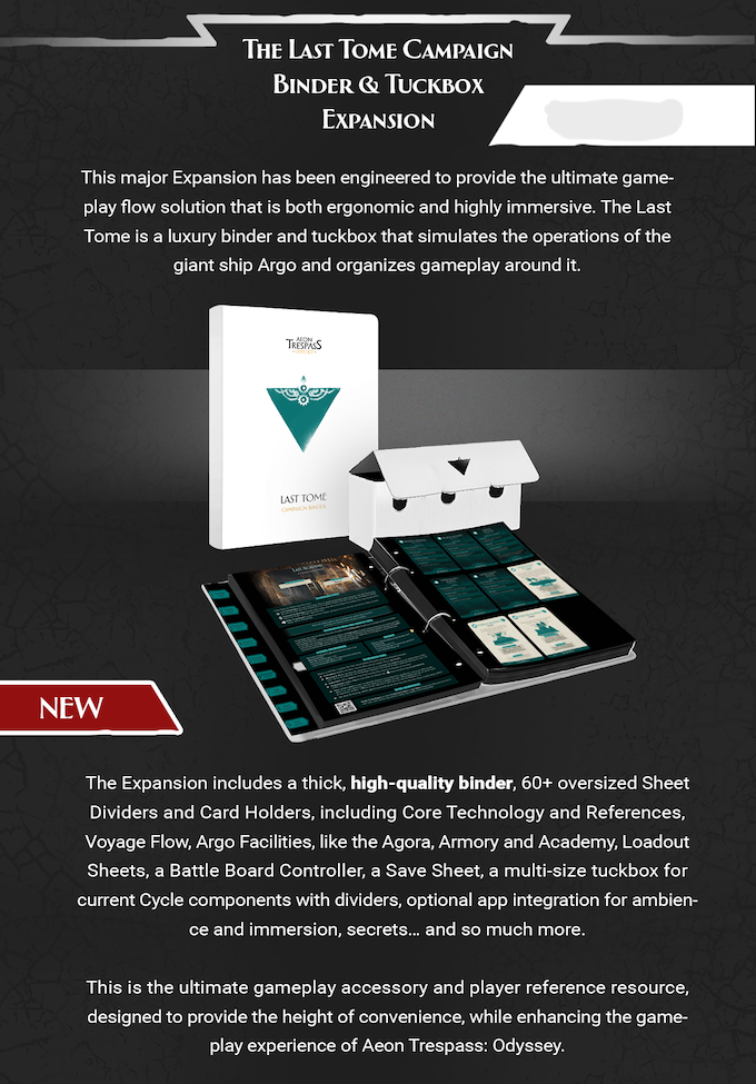 The Kickstarter Exclusive Aeon Trespass: Odyssey Last Tome Campaign Binder & Tuckbox by Into The Unknown Includes: