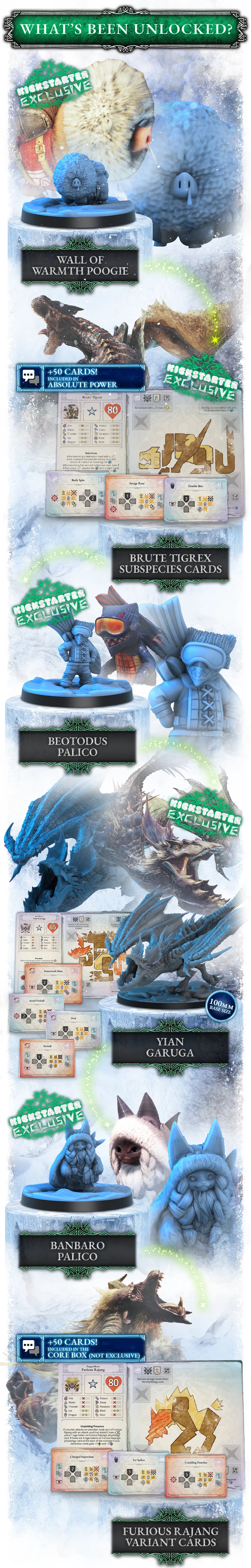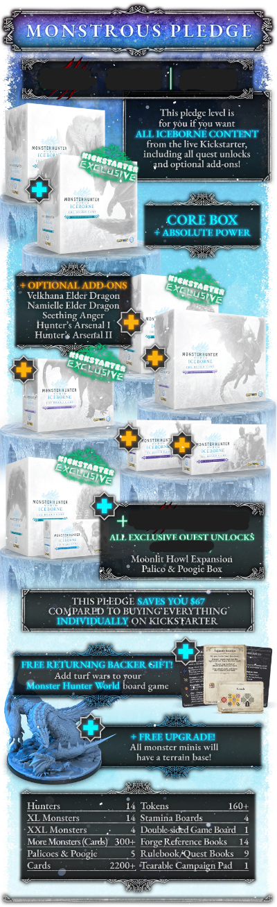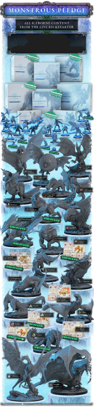 We verified that the ❄️ Overpowering Hunger Monster Expansion (Steamforged Exclusive), ❄️ Blackveil Vaal Hazak Elder Dragon Expansion (Steamforged Exclusive), ❄️ Ruiner Nergigante Elder Draon Expansion (Steamforged Exclusive), and the ❄️ Deluxe Expansion (Steamforged Exclusive) were not included in the all-in during crowdfunding. Since we don't like to use the term 'All-In' lightly around here, we make sure to verify these pledges before offering them to you. No reason to worry though, since we already added these expansions in here for you! Now we verified that you are truly getting ALL-IN!