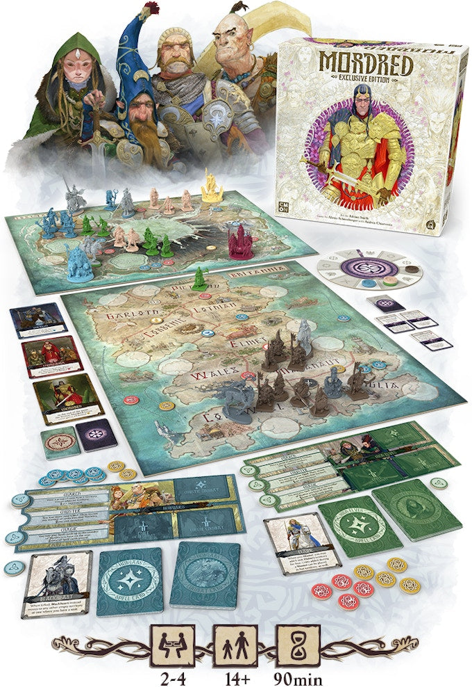 Designed by Alexio Schneeberger with Andrea Chiarvesio, with amazing art by Adrian Smith and miniatures by Studio McVey, Mordred is a competitive game in which 2 to 4 players take control of Legendary Factions of Britannia in the search of dominance and glory.