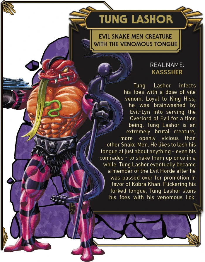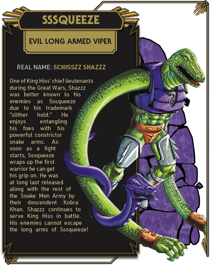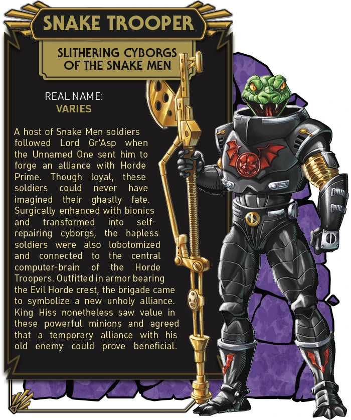 Slithering from the bowels of the Dark Hemisphere of Eternia, the Wrath of Snake Mountain expansion brings King Hiss and his army of Snakemen into play. King Hiss’ snake army has but one goal in mind: to conquer and eradicate any opposition!